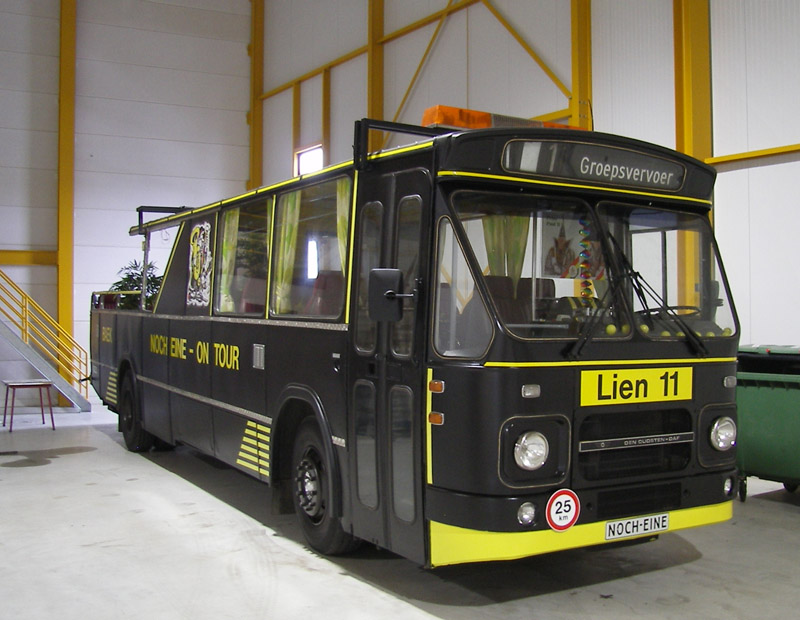 Na de vorming van een algemeen streekvervoerbedrijf in Limburg in 1978 waarbij het VSL (Verenigd Streekvervoer Limburg) ontstond was behoefte aan standaardisatie van het wagenpark. Was het basisbedrijf LTM gestandaardiseerd op Leyland en DAF met carrosserie van Verheul of Den Oudsten, de verschillende particuliere bedrijven die hun lijndiensten met chauffeurs en bussen aan VSL afstonden waren dat zeker niet. VSL bus 8-261 (NS-nummer 8409) was een van de eerste bussen die door het nieuwe bedrijf werden gekocht. In 1995 werden VSL en Zuidooster samengevoegd tot het huidige busbedrijf Hermes maar heeft deze bus, gezien zijn leeftijd, waarschijnlijk niet meer gereden. Alhoewel veel bussen hun weg vonden naar de sloop, naar particulieren of naar het buitenland, kwam de Hermes 8409 in juli 1995 terecht op het vliegveld Beek bij Maastricht. Na een tijd van bescheiden passagiersvervoer op het vliegveld was er nog een taak voor deze bus weggelegd. Op het tot Maastricht Aachen Airport hernoemde vliegveld werden examens voor brandbestrijding gehouden waarbij de 8409 diende als examinatorenverblijf. In het nieuwe milennium kwam de bus echter buiten dienst te staan. In Limburg is carnaval een populair feest waarbij meer dan eens een afgedankte bus werd gebruikt als carnavalswagen. Voor dit doel is de 8409 in de herfst van 2008 overgegaan naar de Zaate Hermenie “Noch Eine” uit Beek en is de bus in rap tempo verbouwd tot een zeer fraaie carnavalswagen, deels uitgevoerd als cabriolet. Zie www.nocheine.nl voor meer informatie. Alhoewel de bus nu ruim 30 jaar oud is, kan deze nog jaren mee. |