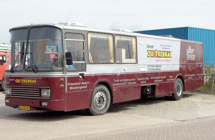 Zo is het geheel niet vreemd dat standaardbussen ook hun weg hebben gevonden naar diverse busbedrijven in België. In 1977 werden aan Diana Cars twee Leyland LBV668 bussen geleverd, parknummers 14 en 20. De combinatie van het KLM-front met het Belgische chassis is uniek. Diana Cars kocht echter vaker bijzondere bussen. Leyland nummer 14 maakte het nog meer bijzonder door naar Nederland terug te keren. Sinds mei 2000 heeft de bus het Nederlandse kenteken BJ-GB-49. Door medehobbyisyt Hugo Richter werden wij op deze bus opmerkzaam gemaakt. Hij is ook de maker van de foto's, waarvoor dank! |